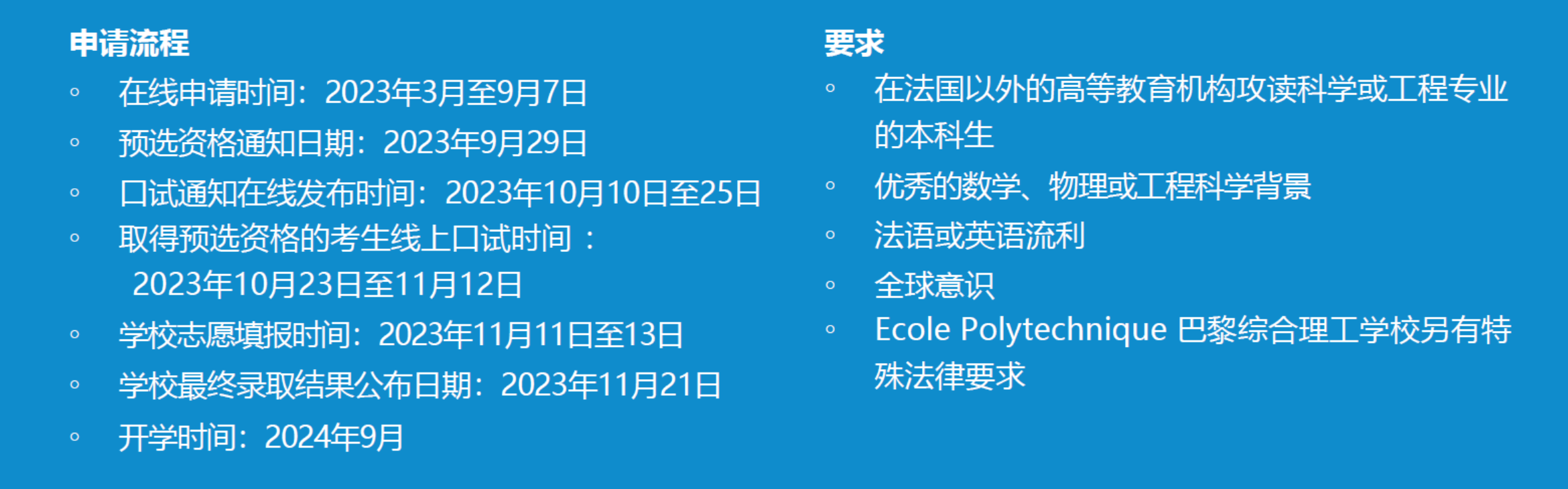 5月25日(周四),巴黎综合理工大学将在北航举办专场宣讲会,面向我校理工科专业本科生介绍其工程师硕士学位项目。2023年,巴黎综合理工大学首次在中国推出5校联考联招的硕士学位工程师项目,被录取学生将于2024年9月入学,并且有机会由巴黎综合理工大学推荐申请国家留学基金委(CSC)奖学金。