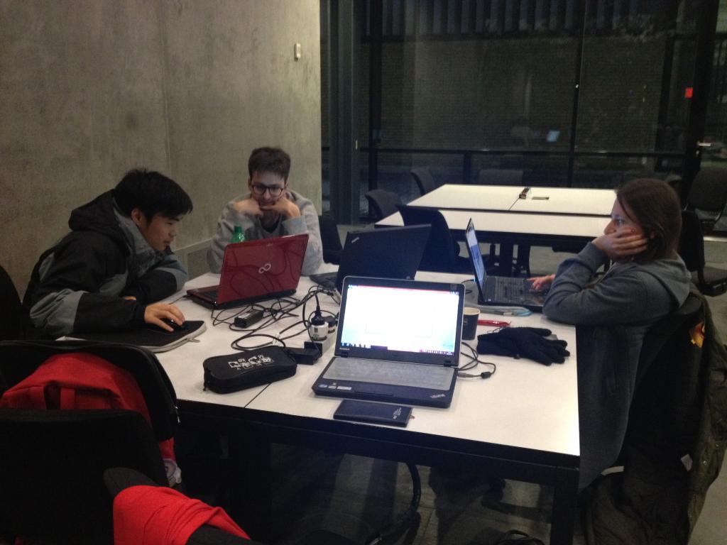 在国外学习,最大的不同是他们对团队协作完成任务十分看重,几乎每次作业和课程设计都需要组队完成。下图是我与一位丹麦同学、一位波兰同学和一位香港同学共同完成学期第一次作业的场景,这样的学习方式不仅能汇聚大家的智慧和灵感,高效完成任务,而且能结识许多朋友,锻炼我们协调处理分歧的能力。
