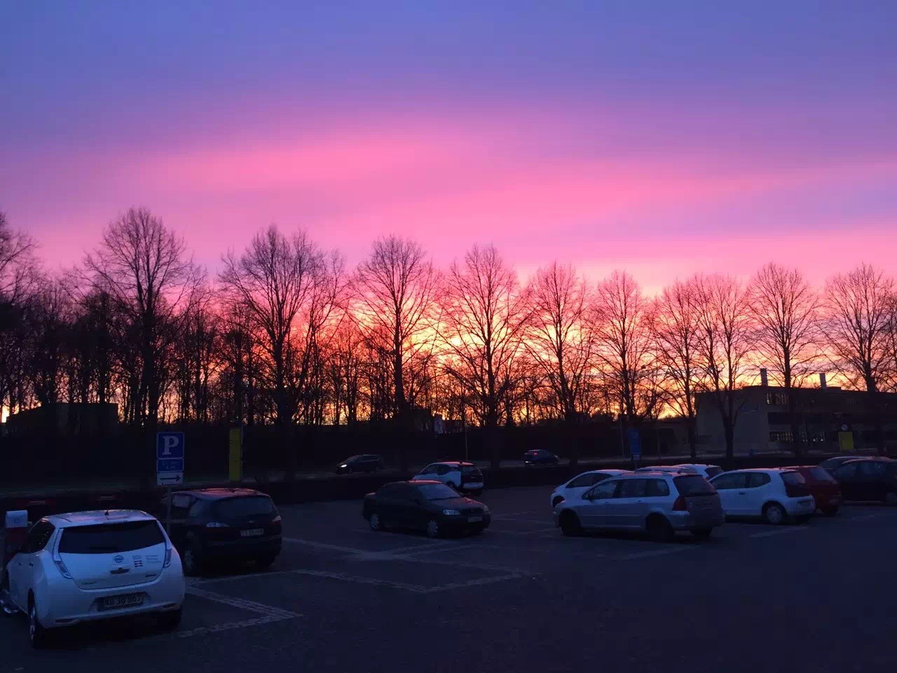 走出图书馆看到的晚霞
