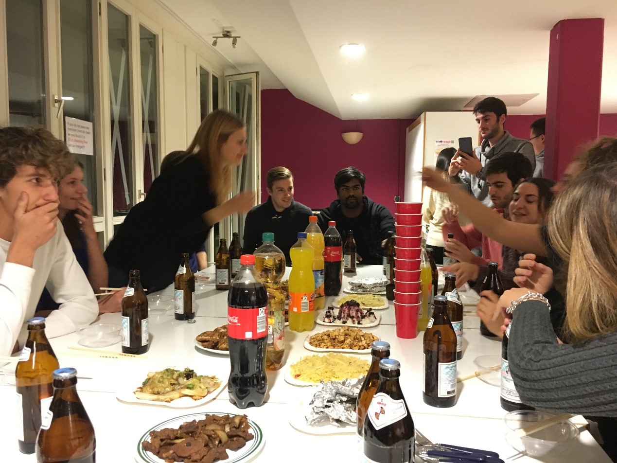 德国盛产暗黑系的食物,并且价格不菲。学校食堂是最经济实惠的地方了,不过种类可比国内少很多。在这里,可以吃到烤土豆、炸土豆、煮土豆……德国人民偏爱一种叫Brezel的咸面包,上面布满盐粒,配着白肠便是经典的巴伐利亚早餐。说到食物,简直是跨越种族和地域的、能够缔结伟大友谊的和平使者。凭借一手现学的半吊子中国菜,便可以征战整个慕尼黑的学生圈。和小伙伴们组织过中日韩友好聚餐、中意厨艺切磋、TUM的Länderabend等等活动,打破了外国同学对中国食物只知饺子的认知,让他们对菠萝鸡和地三鲜等欲罢不能。这里很流行国际美食交流会,每个人带一道菜作为门票赴宴。来自各个国家的食物组成饕餮盛宴,咖喱味儿胡椒味儿混合着各种奇怪的说不上名字的香料味儿将你紧紧包裹。当然,吃得最干净的永远是中国小伙伴带来的菜。