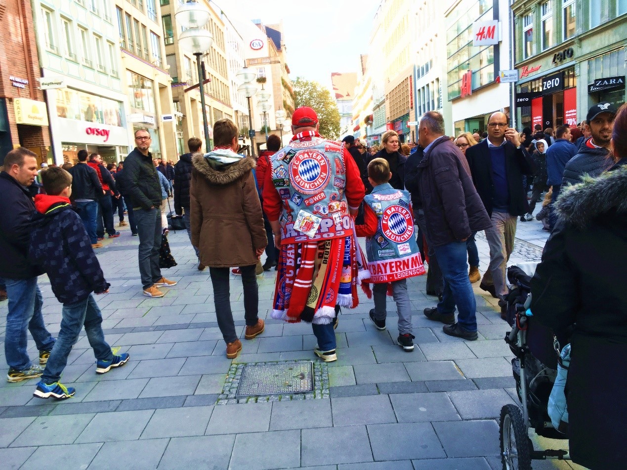 每到周末,平时空荡荡的地铁站从下午两点便开始水泄不通,整个城市被染上鲜艳的拜仁红。那个赛季拜仁在德甲仍然所向披靡,比赛日如同节日一般。狂欢的热流搭载着U6,沿线一路蔓延到安联球场。人们举着啤酒,将队徽围在颈上、穿在身上、摇在手上。除此之外,每周都可以去塞本纳大街近距离观看训练。大部分球员对待球迷的态度可以用平易近人来形容,而俱乐部的开放政策也让这座城市拥有更接地气的足球氛围。
