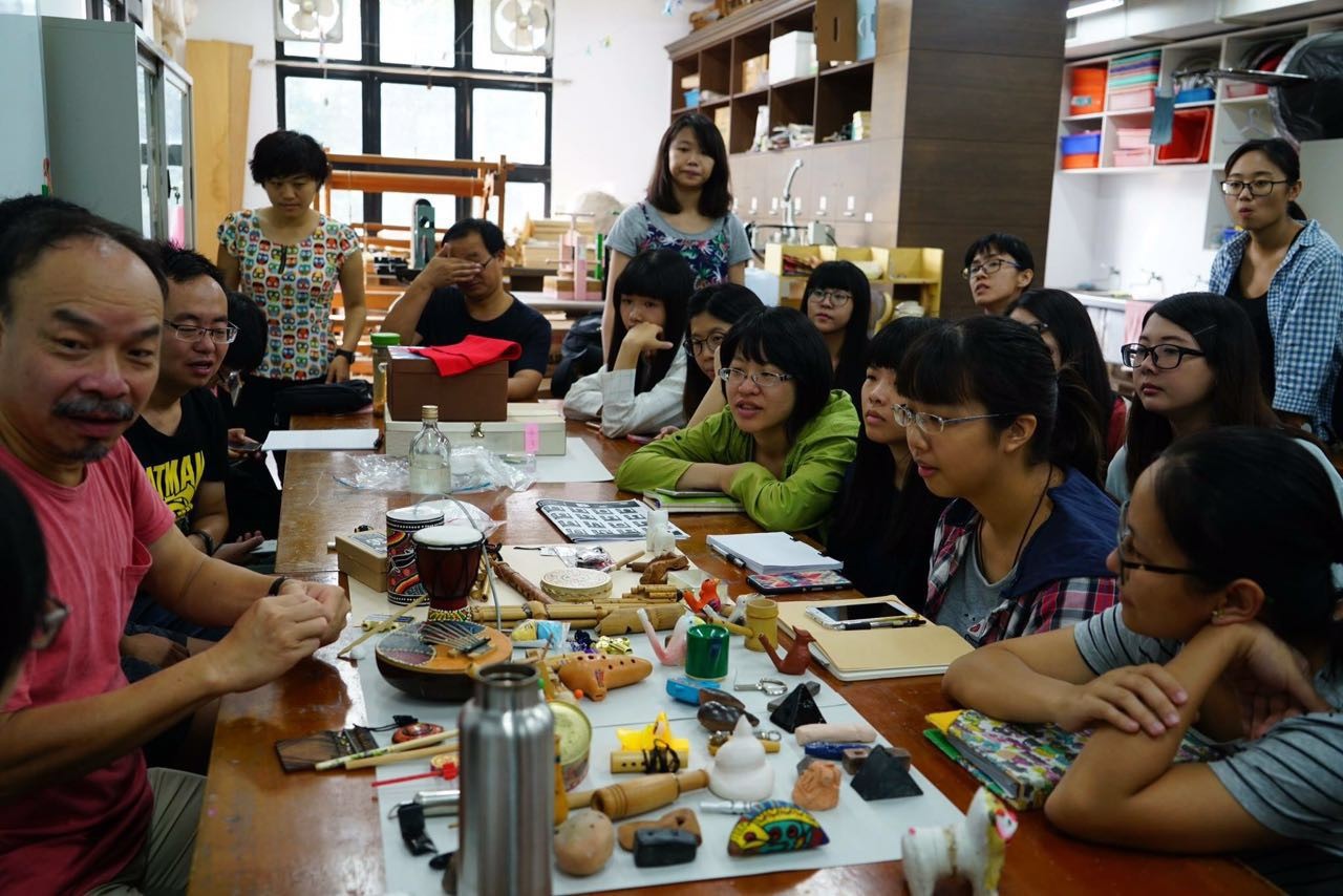 台湾在选课上有蛮大程度的自由,而且老师上课的方式也比较偏向诱导的方式,而不只是单纯的教课,我在台湾主要上了三门课:设计文化比较论,视觉传达设计研究,研究方法论。像是设计文化比较论的课,老师在上课的时候都会和学生有许多互动,像是介绍染色的时候,就会带上布料让我们去染色,去学习,然后在课堂上老师也鼓励学生能有更主动的表现,我认为这是在大陆的学校可以学习的部分。我所在的设计学院在云科是比较大的学院,师资力量和设施建设都相对比较完整,可供选择的课程也很丰富。在学习过程中,很明显感受到老师同学关系很密切,老师的教学目的也很明确。