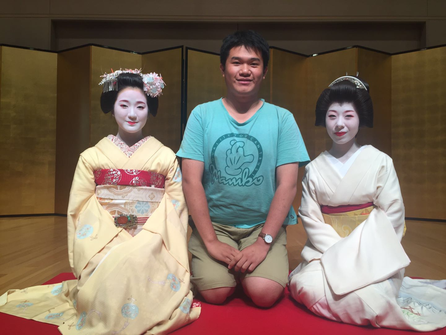 除了日语课程,在这一个月的交流中几乎每个工作日的下午,都会有各式各样的日本京都的文化体验项目。例如坐禅、抹茶制作、和太鼓、艺伎表演等等具备浓厚日本京都文化特色的各种体验,着实令人感到惊喜。相对比于参加旅游团或是自由行,这种深入其中的文化体验更能真正体会到当地的传统文化的精华。人。祗园祭是日本的三大祭礼中最为盛大的一个,也是最具日本特色的一个。我们这些来自世界各地学生们穿着印制着不同花纹的具有当地传统特色的服装,漫步在洋溢着浓厚节日气息的大街小巷,周围的都是只曾在电影或是动漫中才能看到的祭典活动,还有那飘着诱人香气的节日限定美食,这一切的一切都让我们感到十分新奇和有趣。这些来自立命馆大学精心准备的文化体验项目,不仅仅开阔了我的视野,丰富了我的行程,更重要的是在这些文化体验的过程中和来自世界各地的同学们体验同样的活动,建立起了深厚的友谊。