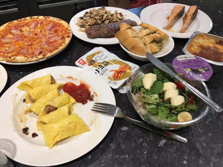 在异国的家中,我和同校的伙伴们一起探索周边的超市,在公寓的厨房里做饭,煎一煎牛排三文鱼,试一试鸡蛋卷肠等自己发明的菜式,锻炼了一番手艺。
