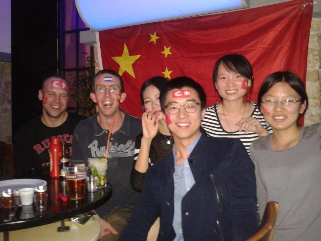 Country Presentation活动上,中国学生和外国友人在国旗下亲切合影。考完试,老师请我们品尝捷克的“美酒”!来捷克交换已经快四个月了,回想一下交换的历程,感觉很充...